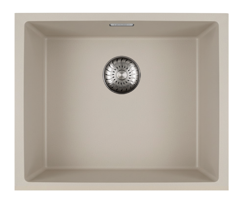 Caressi Bisque CAGRPP50BI-TU Enkele Keukenspoelbak 50 x 40 Graniet Coffee Cream Met RVS Korfplug Onderbouw Of Opbouw