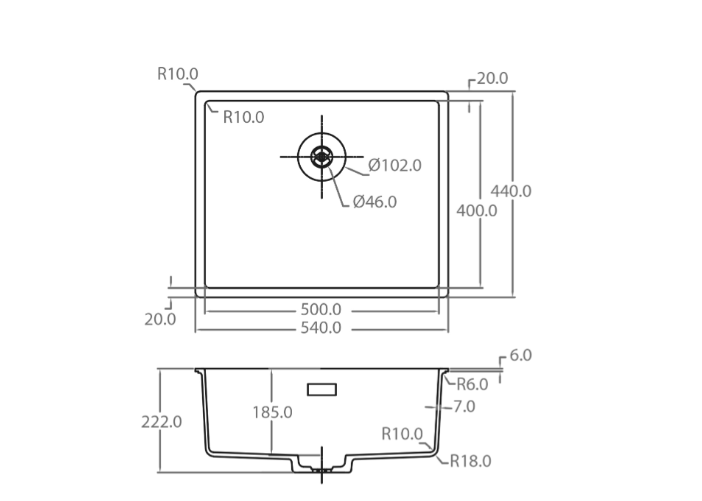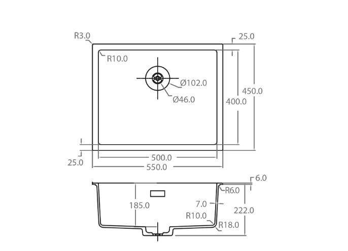 Caressi Basic Line CABL50R10 RVS Keukenspoelbak Onderbouw-Vlakbouw-Opbouw