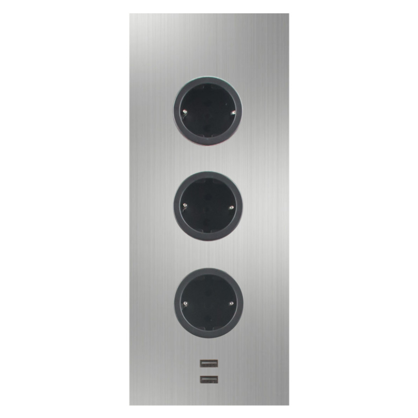 Caressi Energiezuil 3ST29 Energiezuil In De Kleur RVS Met 3 Stopcontacten En Dubbele USB-Lader Met Randaarde