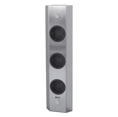 Thebo Energiezuil ST3081/320 Energiezuil In De Kleur RVS Met 3 Stopcontacten En USB-Lader Met Randaarde