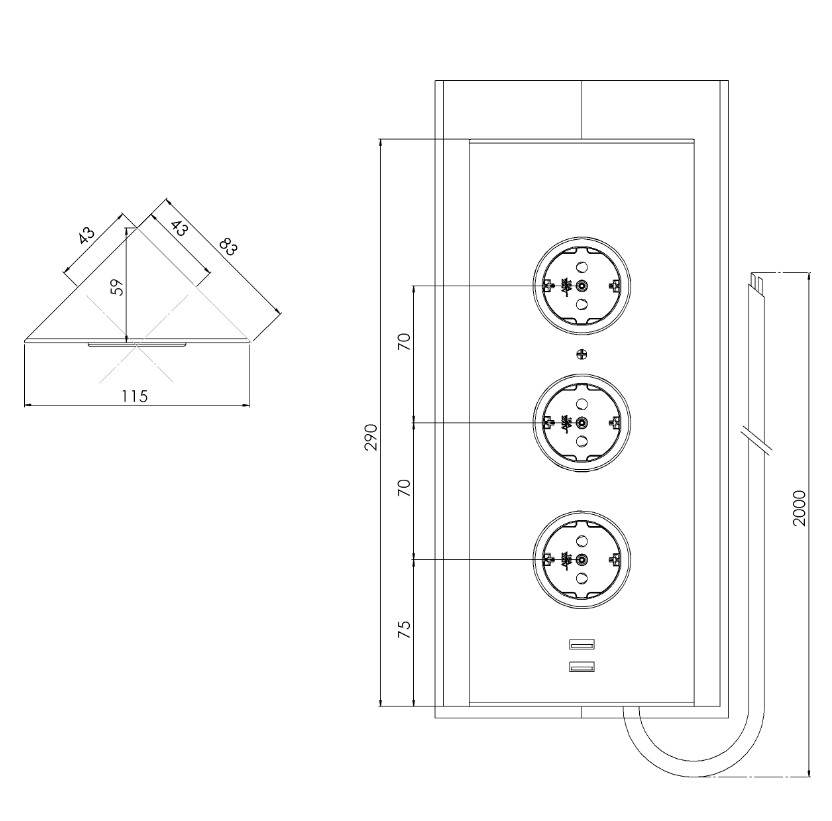 Als laatste bespreken we het hoekstopcontact. Ontzettend handig als u schuine daken of weinig ruimte heeft in de keuken. Met een hoek contactdoos lost u ruimtegebrek snel en makkelijk op. U kunt het hoek stopcontact zowel laag als hoog plaatsen of op het werkblad in de hoeken. Handig? Wij vinden van wel!