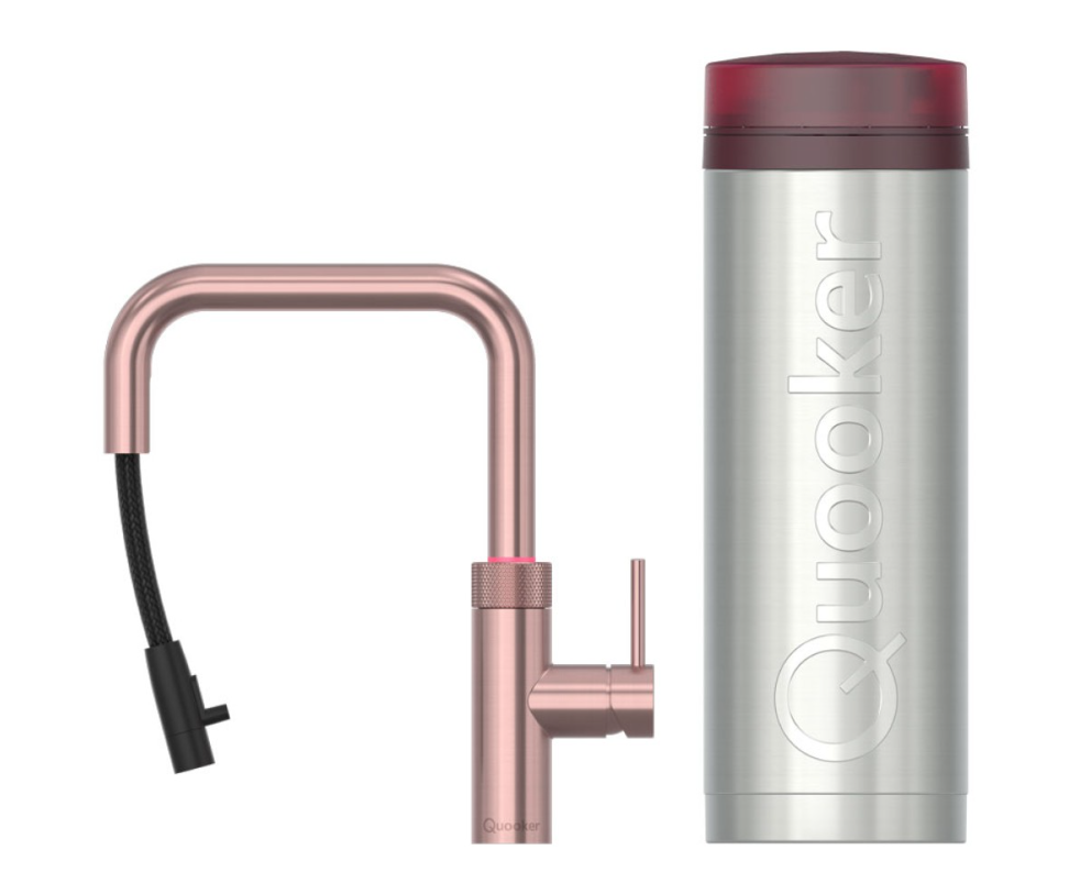 Quooker Flex Square Rosé Koper Met Pro3 Boiler En Cube Boiler 5 in 1 Kokend Water Keukenkraan Ook Gekoeld Gefilterd En Bruisend Water 3XSRCO Cube