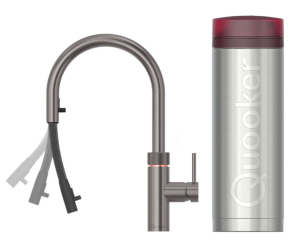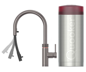 Quooker Flex Gunmetal Met Combi Boiler En Cube Boiler 5 in 1 Kokend Water Keukenkraan Ook Gekoeld Gefilterd En Bruisend Water 22XGME Cube