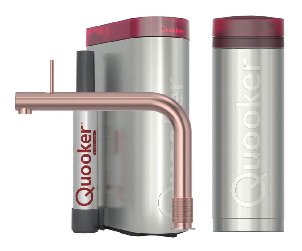 Quooker Front Rosé Koper Met Combi+ Boiler En Cube Boiler 5 in 1 Kokend Water Keukenkraan Ook Gekoeld Gefilterd En Bruisend Water 22+FRONTRCO Cube