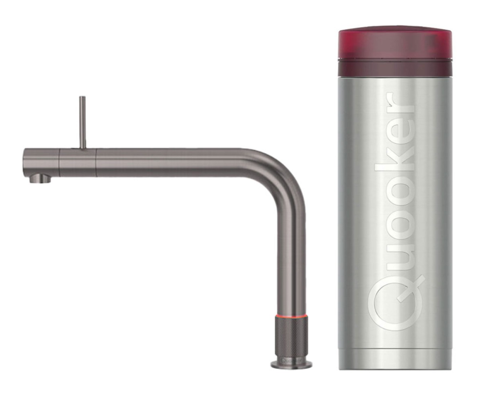 Quooker Front Gunmetal Met Combi+ Boiler En Cube Boiler 5 in 1 Kokend Water Keukenkraan Ook Gekoeld Gefilterd En Bruisend Water 22+FRONTGME Cube