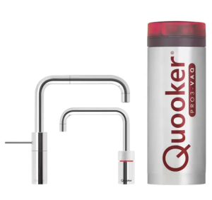 Quooker Nordic Square Twintaps Chroom Met PRO3 Boiler 3 in 1 Kokend Water Keukenkraan