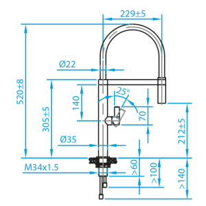 Caressi CA112I L ECO Eenhendel Keukenmengkraan Volledig RVS