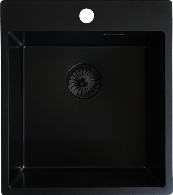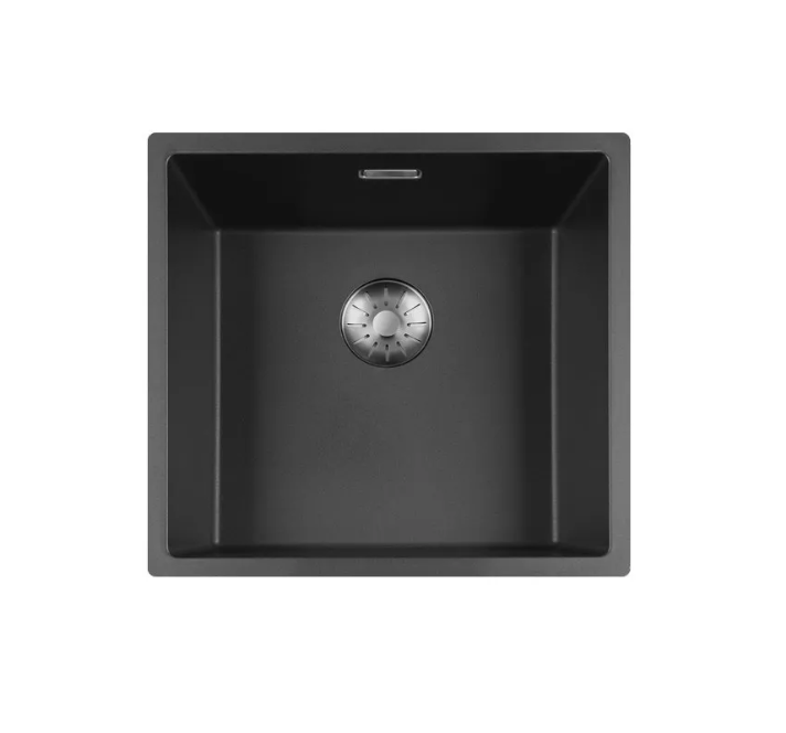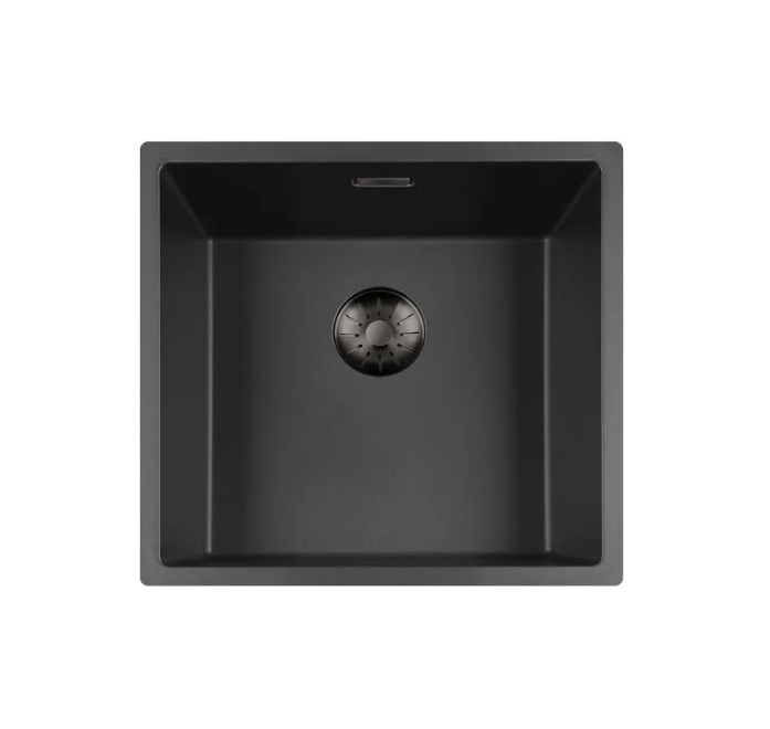 Lorreine 40BQSP-FU Luxe Enkele Keukenspoelbak Graniet Zwart Met Korfplug Zwart 40 x 40 Vlakbouw Of Onderbouw