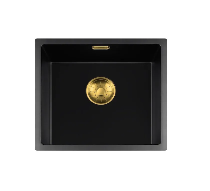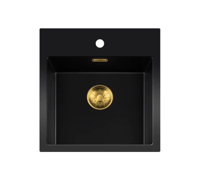 Lorreine 40BQ-T-Gold Luxe Enkele Keukenspoelbak Graniet Zwart Met Korfplug Goud 40 x 40 Opbouw