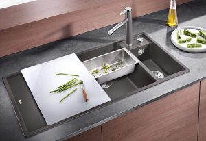 Blanco Axia III 6 S-F 527231 Anderhalve Keukenspoelbak Links Silgranit Vulkaangrijs Inclusief Draaiknopbediening Inclusief Houten Snijplank Vlakbouw Of Onderbouw
