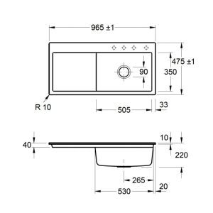 Villeroy & Boch Subway 45 Compact Keukenspoelbak Keramiek Links Wit Opbouw