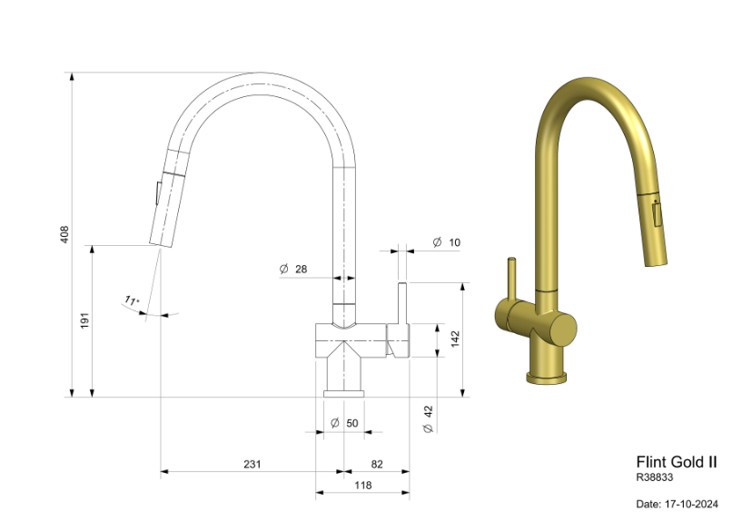 Villeroy & Boch Umbrella Flex Gold 92540003 Keukenkraan Mat Goud Met Uittrekbare Handdouche EXCLUSIEF ARTIKEL