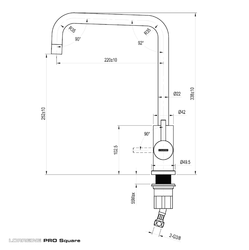 Lorreine Pro-Square Eenhendel Keukenmengkraan Volledig RVS