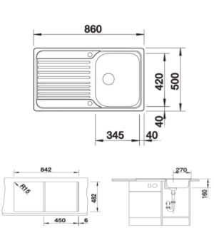 Caressi Basic Line 39 x 36 CABLPP39R50 Keukenspoelbak RVS Onderbouw-Vlakbouw-Opbouw