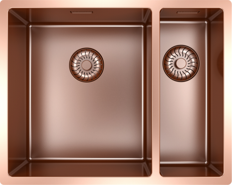 Caressi 15 x 40 + 34 x 40 CAPP1534R10CO Anderhalve Keukenspoelbak Rechts Copper Onderbouw – Vlakbouw – Opbouw