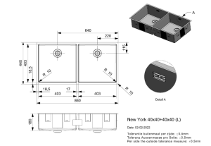 Lorreine 4040R Dubbele Keukenspoelbak RVS 40 x 40 + 40 x 40 Onderbouw – Vlakbouw – Opbouw