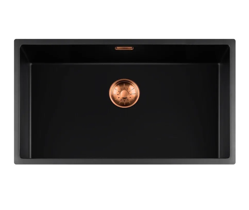 Lorreine 74BQ-FU-Copper Luxe Enkele Keukenspoelbak Graniet Zwart Met Korfplug Copper 74 x 40 Vlakbouw Of Onderbouw