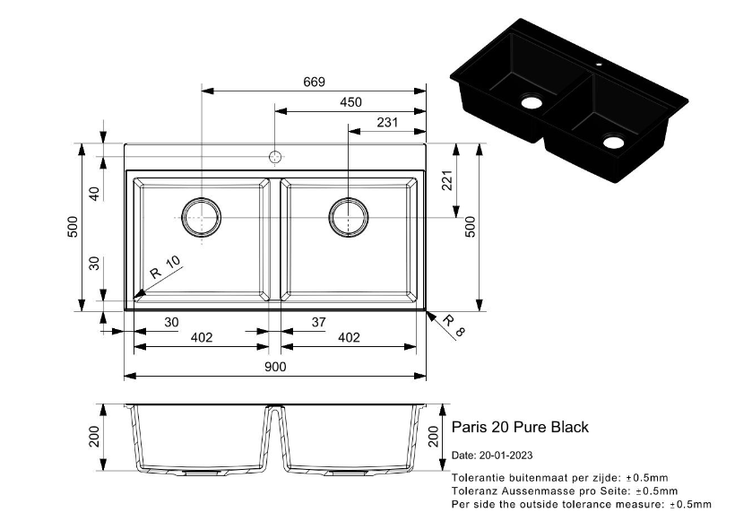 • Blanco spoelbak zwart
