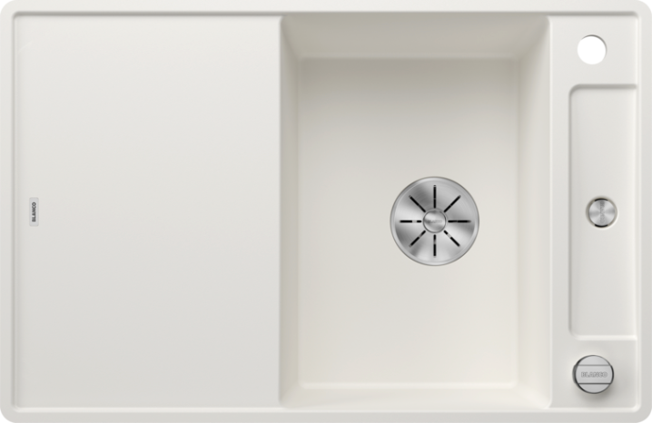 HomeWitte spoelbak Blanco Axia III 45 S-F 523202 Keukenspoelbak Silgranit Wit Inclusief Draaiknopbediening Inclusief Glazen Snijplank Omkeerbaar Vlakbouw Of Onderbouw