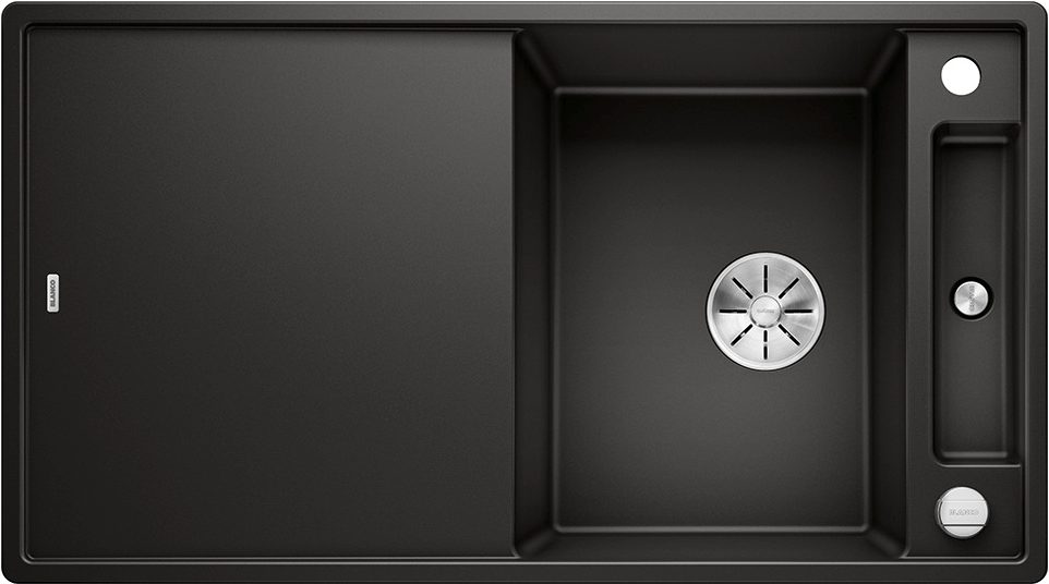 Blanco Axia III 45-S 525841 Keukenspoelbak Silgranit Zwart Inclusief Draaiknopbediening Inclusief Houten Snijplank Omkeerbaar Opbouw