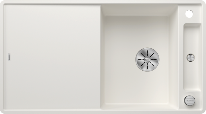 HomeWitte spoelbak Blanco Axia III 5 S-F 523234 Keukenspoelbak Silgranit Wit Inclusief Draaiknopbediening Inclusief Glazen Snijplank Omkeerbaar Vlakbouw Of Onderbouw