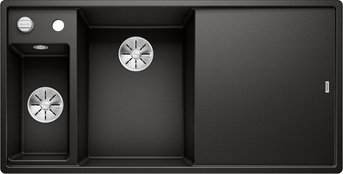 Blanco Axia III 6 S 525849 Keukenspoelbak Links Silgranit Zwart Inclusief Draaiknopbediening Inclusief Houten Snijplank Opbouw