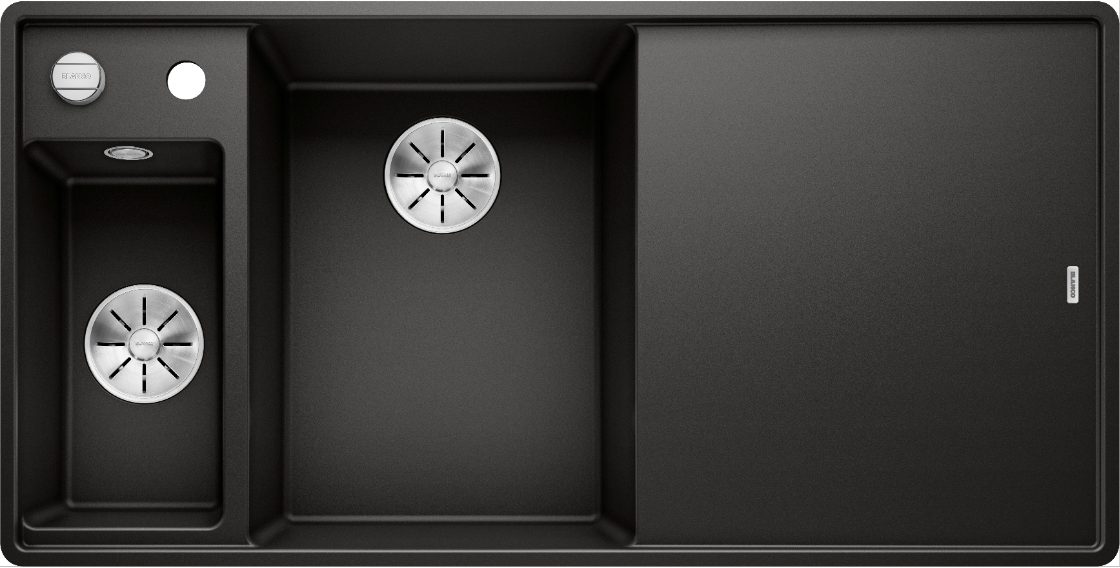 Blanco Axia III 6 S-F 525853 Anderhalve Keukenspoelbak Links Silgranit Zwart Inclusief Draaiknopbediening Inclusief Houten Snijplank Vlakbouw Of Onderbouw
