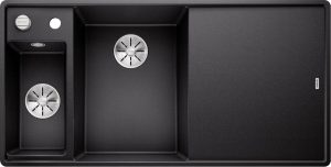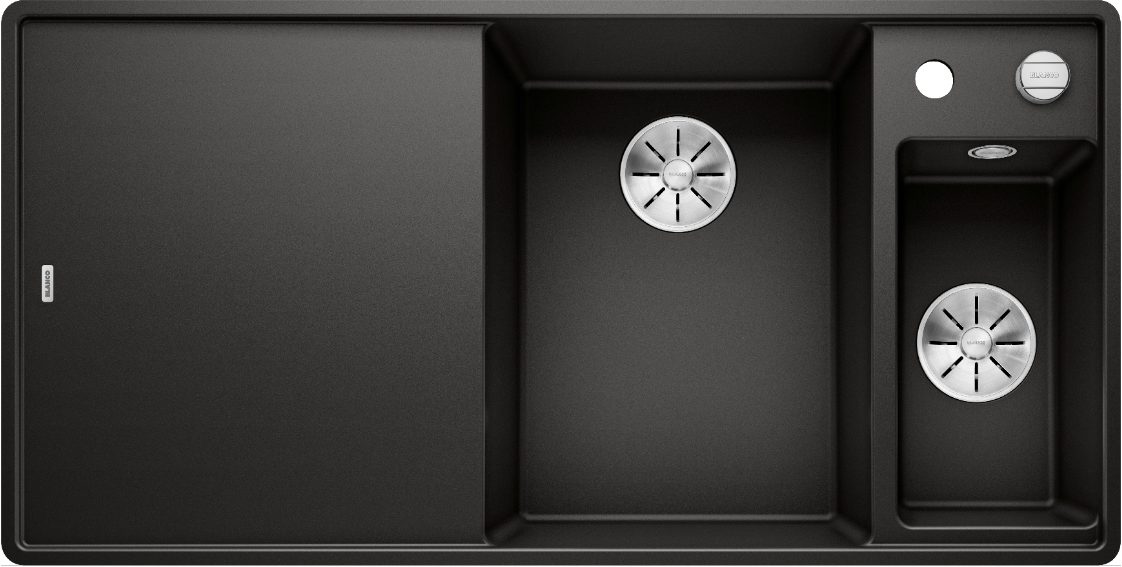 Homezwarte spoelbak Blanco Axia III 6 S-F 525854 Anderhalve Keukenspoelbak Rechts Silgranit Zwart Inclusief Draaiknopbediening Inclusief Glazen Snijplank Vlakbouw Of Onderbouw