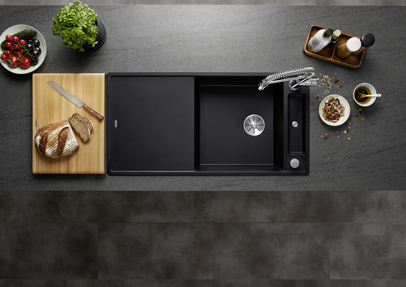 • Antraciet spoelbakken