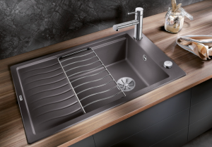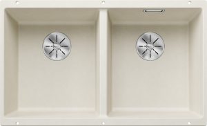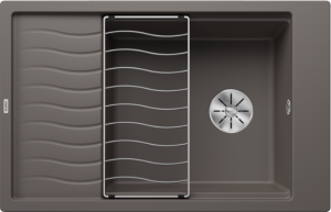 Inclusief multifunctioneel inzetbakje in roestvrij staal, plaatsbesparend afloopgarnituur, InFino korfventielen 3 ½” met draaiknopbediening voor de hoofdbak