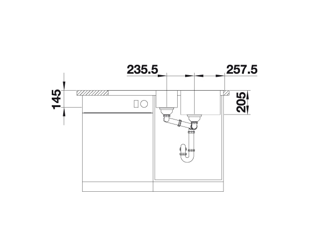 Bakdiepte: 205 mm / 145 mm