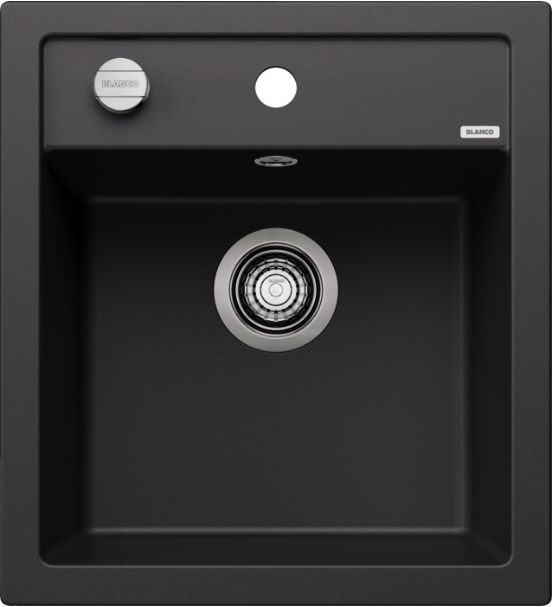 Blanco Dalago 45-F 525870 Enkele Keukenspoelbak Silgranit Zwart Inclusief Draaiknopbediening Vlakbouw Of Onderbouw