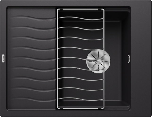 Blanco Elon 45 S 525879 Enkele Keukenspoelbak Silgranit Zwart Inclusief Draaiknopbediening Inclusief Rooster Omkeerbaar Opbouw