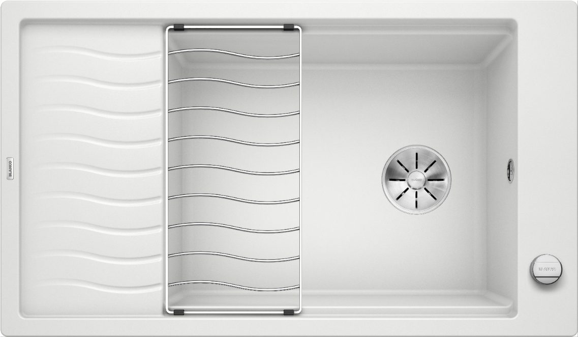 HomeWitte spoelbak Blanco Elon XL 8 S 524864 Enkele Keukenspoelbak Silgranit Wit Inclusief Draaiknopbediening Inclusief Rooster Omkeerbaar Opbouw