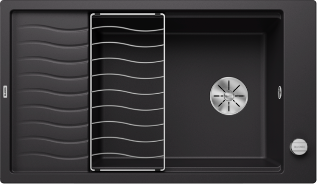 Blanco Elon XL 8 S 525885 Enkele Keukenspoelbak Silgranit Zwart Inclusief Draaiknopbediening Inclusief Rooster Omkeerbaar Opbouw