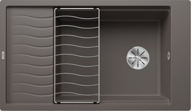 HomeGranieten spoelbakken Blanco Elon XL 8 S 527255 Enkele Keukenspoelbak Silgranit Vulkaangrijs Inclusief Rooster Omkeerbaar Opbouw