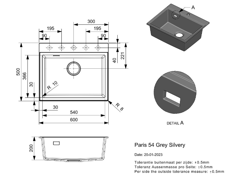 Materiaal: Silgranit / roestvrij staal