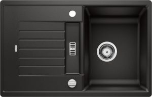 Blanco Zia 45 S 526012 Enkele Keukenspoelbak Silgranit Zwart Inclusief Draaiknopbediening Omkeerbaar Opbouw