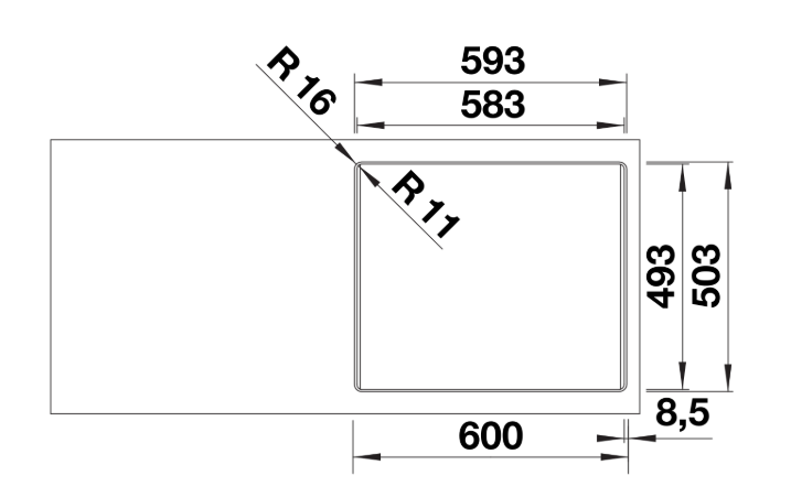 Categorieën: 600 mm, Blanco spoelbak, Granieten spoelbakken Blanco, Granieten spoelbakken