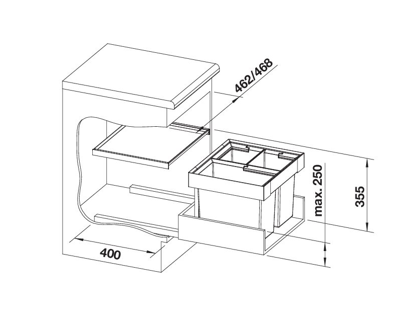 Inclusief systeem voor inbouw in ladekasten, systeemdeksel, 1 x 19 l en 2 x 8 l emmer, 1 x emmerdeksel 8 l