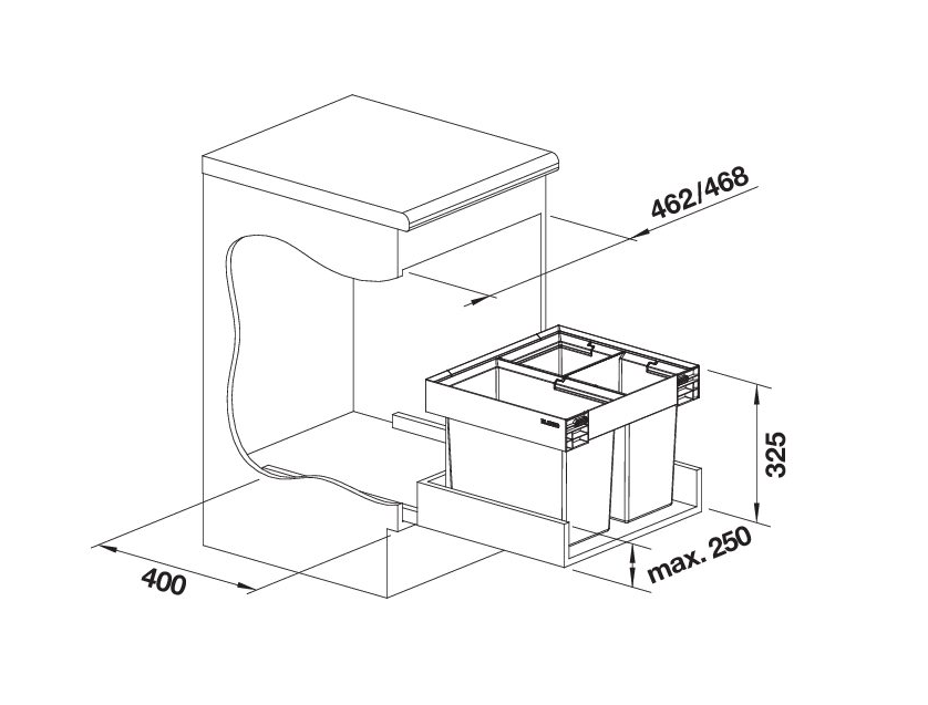 Voor onderkasten met gescheiden laden en een breedte van 50 tot 90 cm dankzij een verminderde installatiehoogte van 330 mm