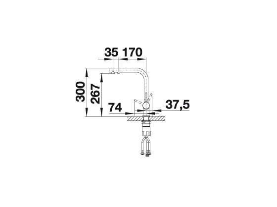 Ruimtebesparend en praktisch: geen bijkomend boorgat nodig voor de gefilterde watertoevoer