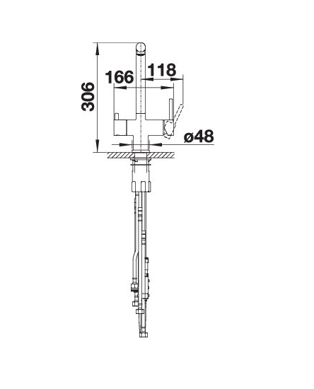Ruimtebesparend en praktisch: geen bijkomend boorgat nodig voor de gefilterde watertoevoer