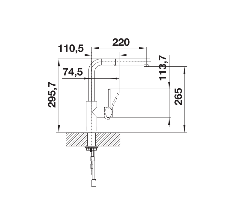 Meer bewegingsvrijheid bij installatie tegen een muur dankzij de bedieningshendel die verticaal staat in neutrale positie