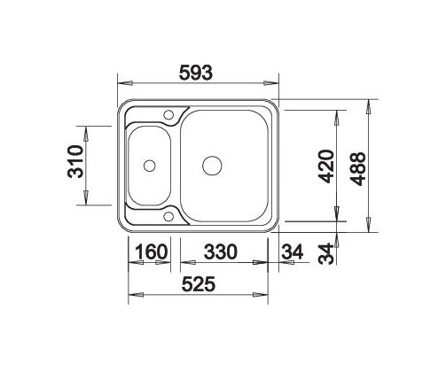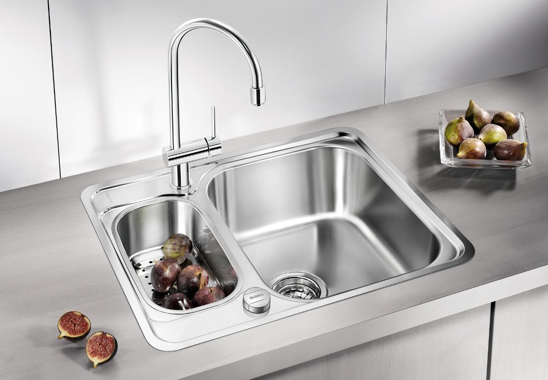 Inclusief inzetbakje, plaatsbesparend afloopgarnituur, korfventielen 3 ½” met afloopbediening draaiknopbediening op de hoofdbak