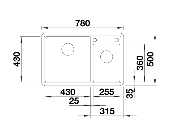 Categorieën: 800 mm, Blanco spoelbak, Granieten spoelbakken