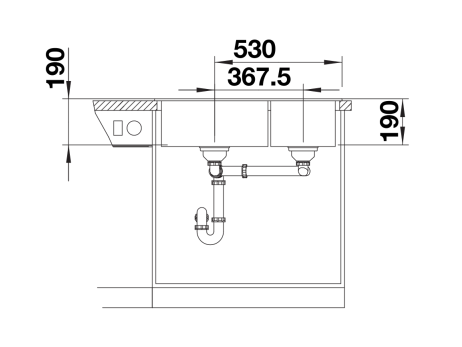 Bakdiepte: 190 mm / 190 mm