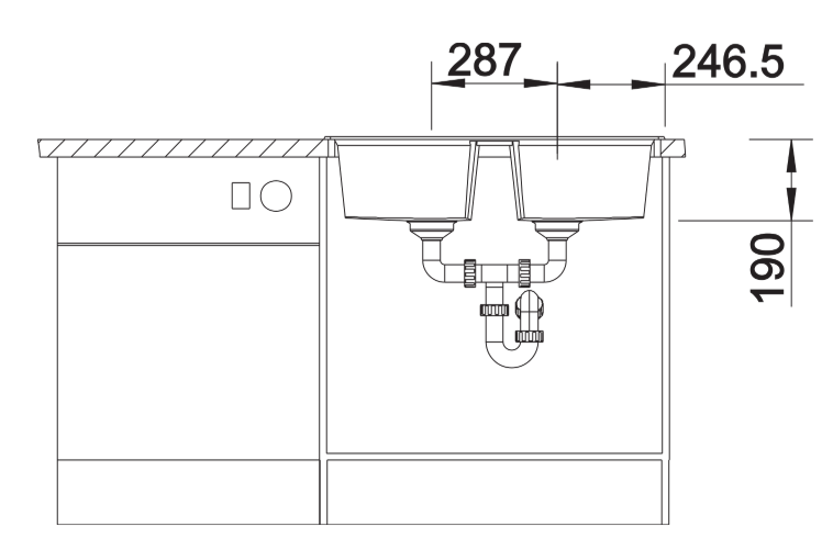 Inclusief afloopgarnituur met ruimtebesparende leiding, 2 x InFino korfplug 3 ½”
