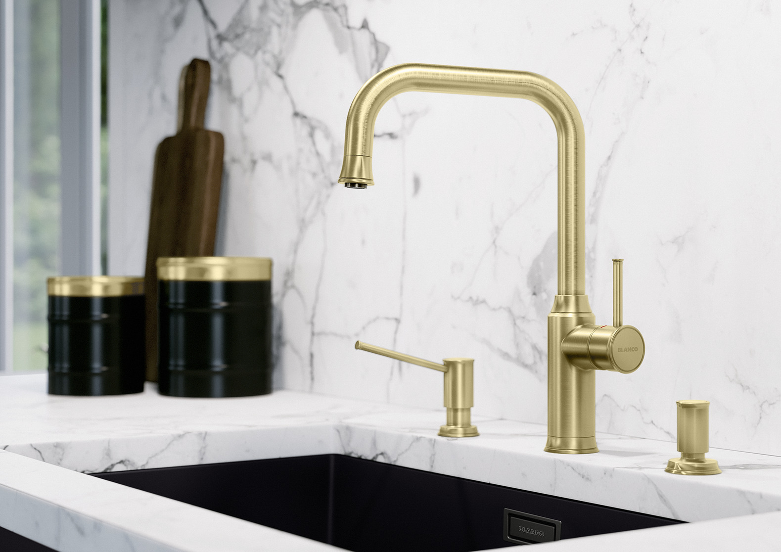 Systeemoplossing met bijpassende afloopbediening en afwasmiddeldispenser
