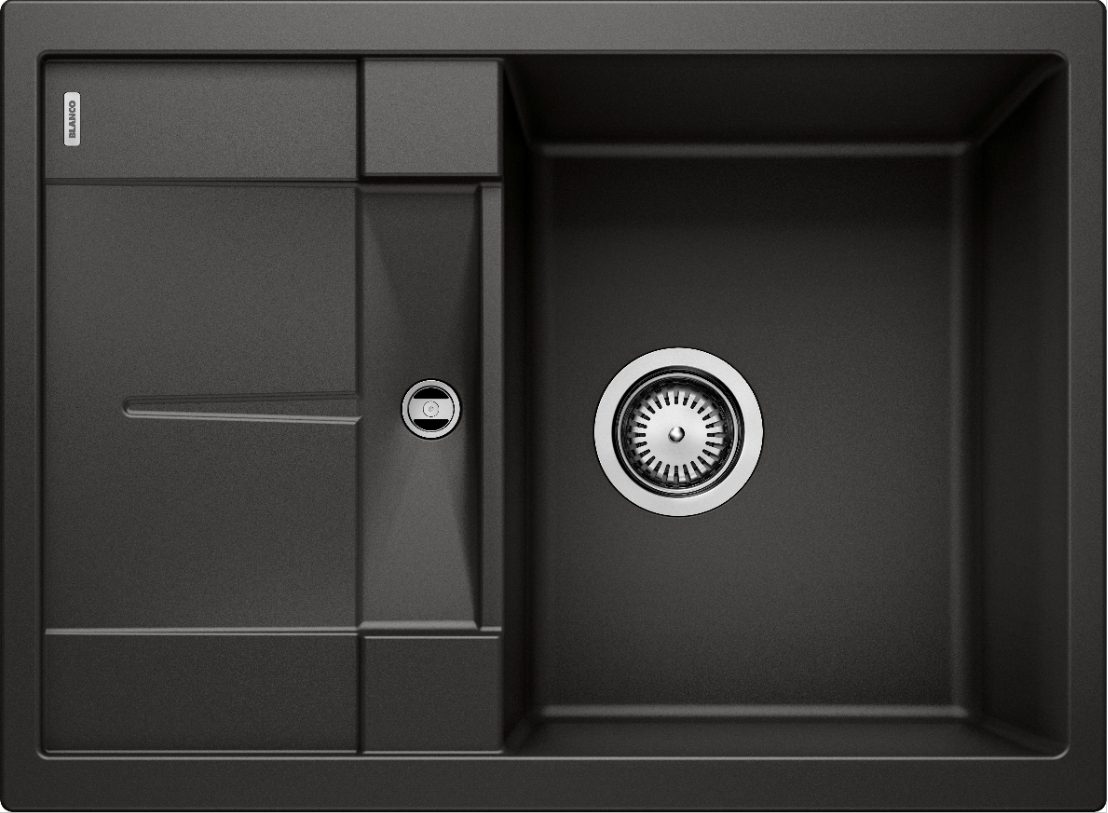 Blanco Metra 45 S Compact 525913 Enkele Keukenspoelbak Silgranit Zwart Inclusief Draaiknopbediening Omkeerbaar Opbouw